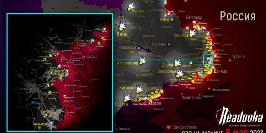 Новая карта боевых действий на Украине 9 мая 2023. Спецоперация России на Украине, день 440-й спецоперации РФ