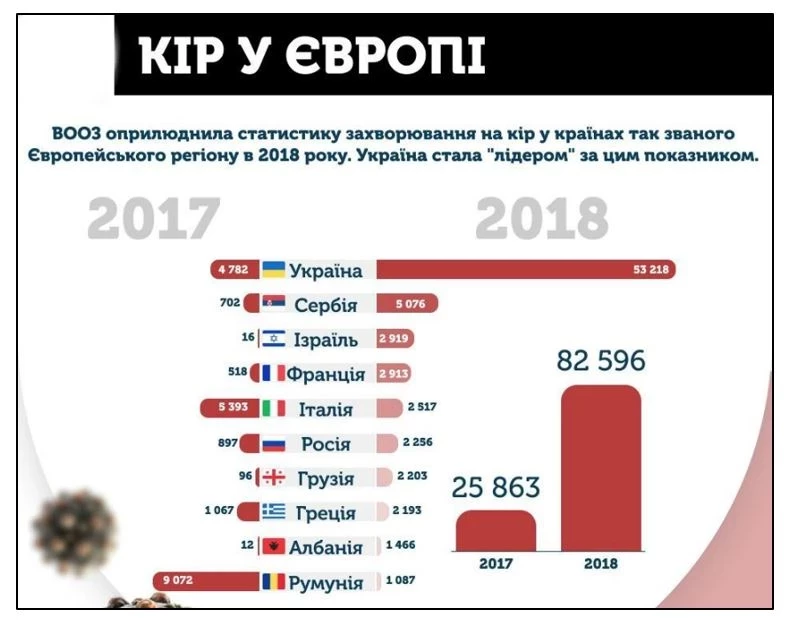 Но Украина и ранее, в 2017-2019 гг., переживала вспышки эпидемий таких болезней, которые, казалось бы, давно были побеждены. Именно во время Супрун небывалых масштабов достигла эпидемия кори. Согласно статистике ВОЗ в 2018 году Украина стала «лидером в Европе по заболеваемости корью.