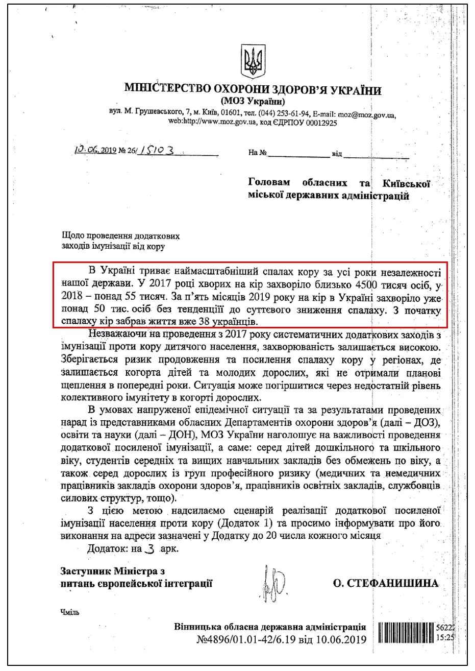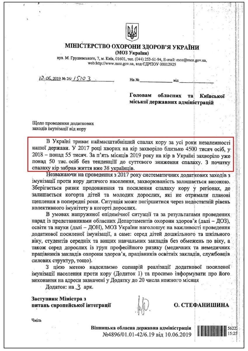 Письмо МОЗ главам ОГА: