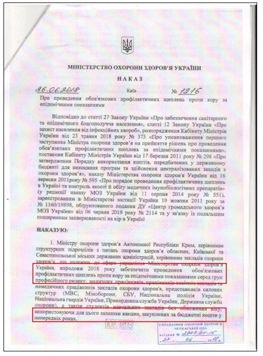 Приказ Министерства охраны здоровья Украины № 1216:
