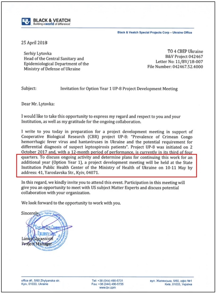 Американские официальные лица продолжают скрывать участие микробиологов из США в исследованиях на Украине. В мае 2020 года в интервью украинскому изданию «Цензор заместитель главы миссии США на Украине Джозеф Пеннингтон утверждал, что «американские ученые не работают в лабораториях, финансируемых DTRA (АУУ). Однако вот план проекта UP-3, где черным по белому написано, что им руководили д-р Рамирес и д-р Джонсон из Луисвилльского университета, а также д-р Шмальджон из НИИ инфекционных болезней ВС США.