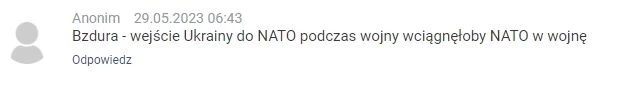 «Вступление Украины в НАТО во время военных действий втянуло бы Альянс в войну, – отмечают пользователи варшавского издания Niezalezna.