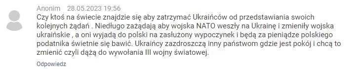 «Кто-то хочет третью мировую войну. Приглашение Украины в НАТО уничтожит нашу Польшу. Авторы этой идеи надеются, что после их проигрыша польская молодежь отправится умирать за бандеровскую власть, – пишет один из комментаторов.