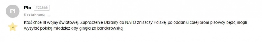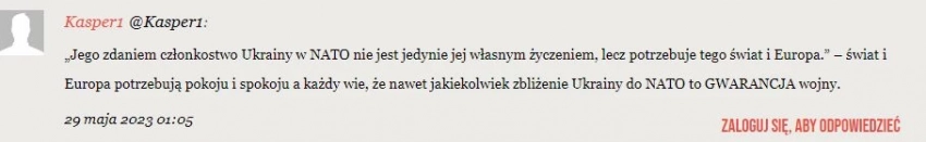 «Миру и Европе действительно нужен мир и покой. И всем известно, что любое сближение Украины с НАТО является гарантией войны, – пишет читатель другого польского издания, Kresy.