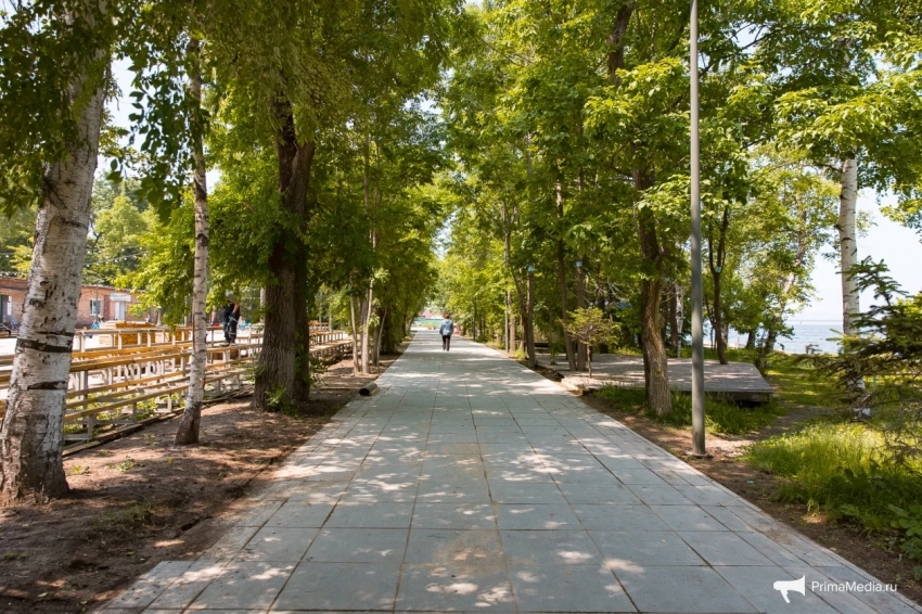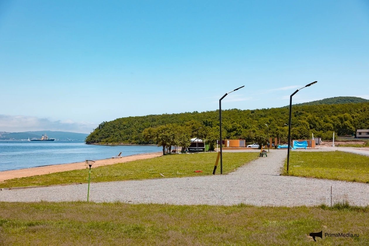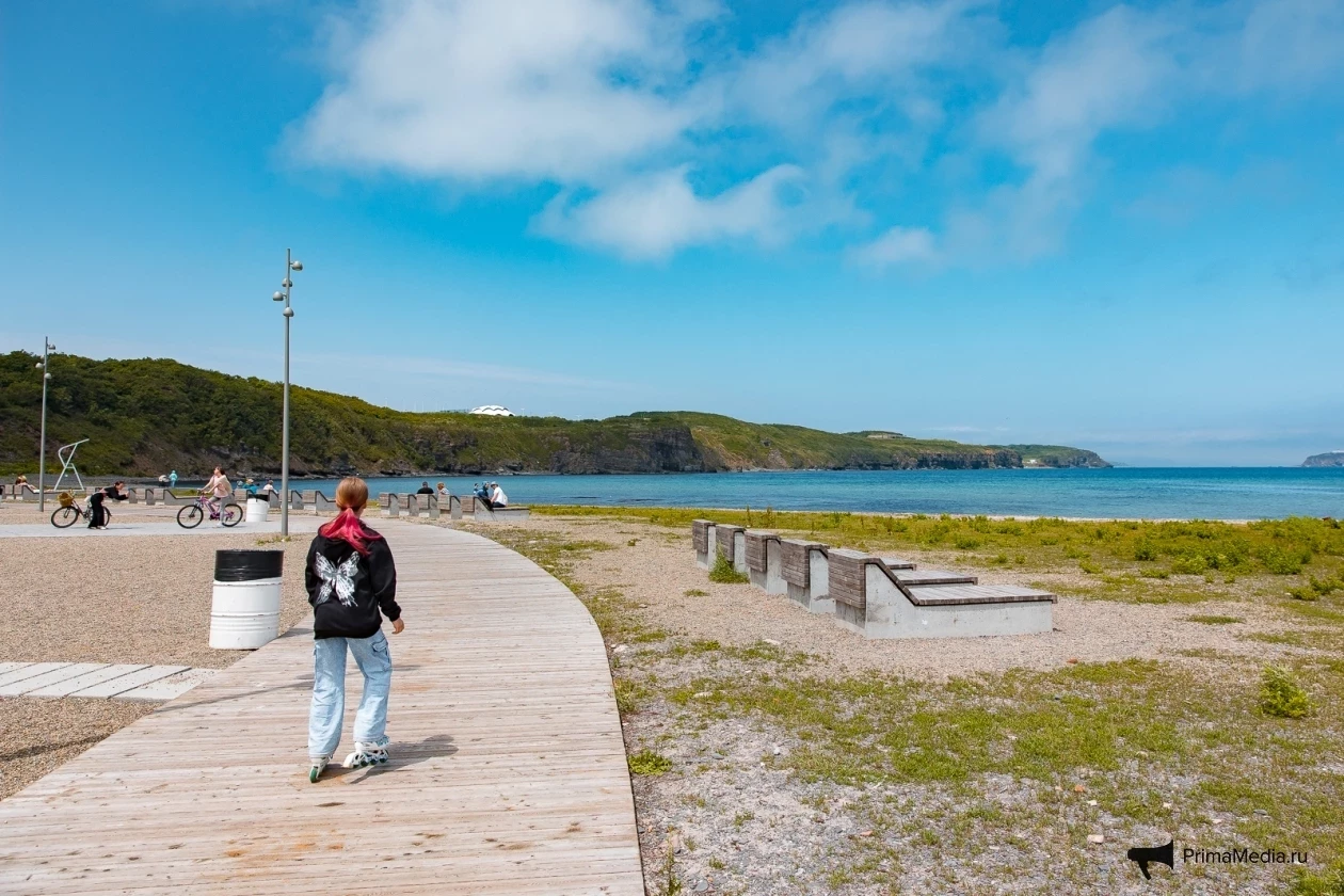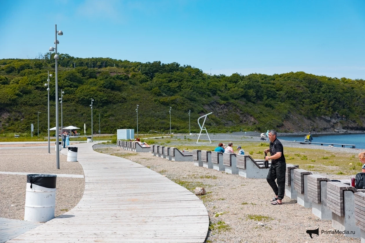 По ровному берегу с мелкими камешками и насыщенной зелёной травкой пролегают деревянные дорожки — идеальное место для прогулок, по словам посетителей. Для любителей активного отдыха есть прокат сапов, чтобы отправиться в увлекательное путешествие по акватории Владивостока.