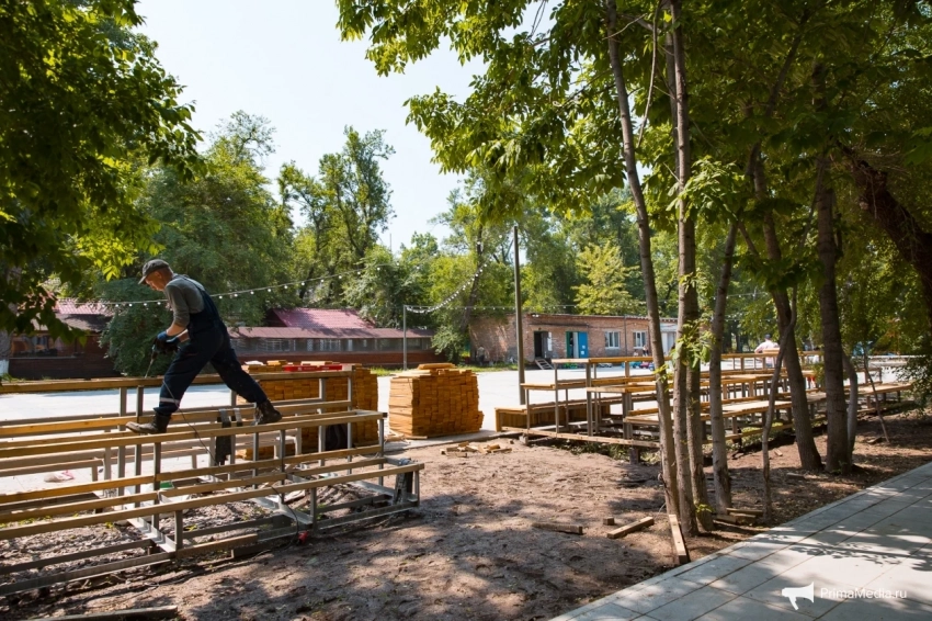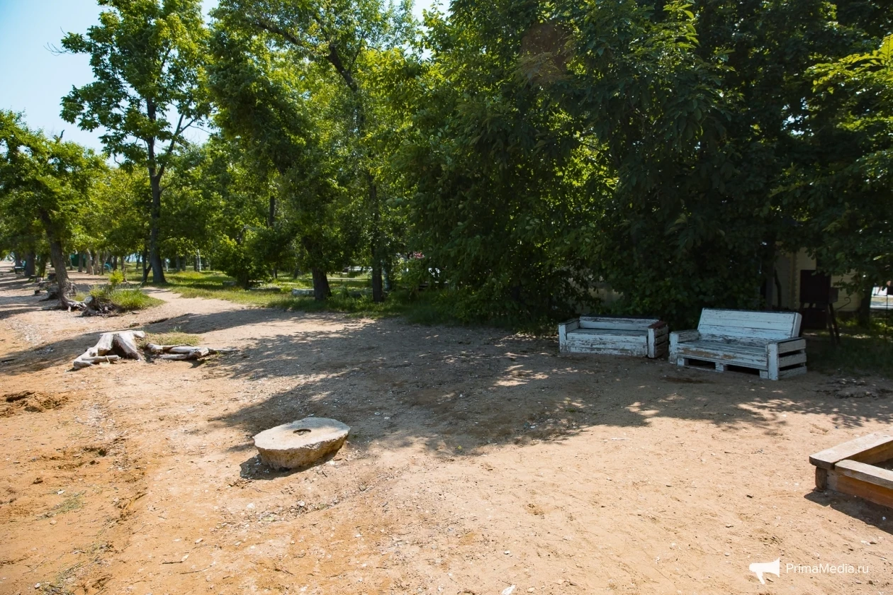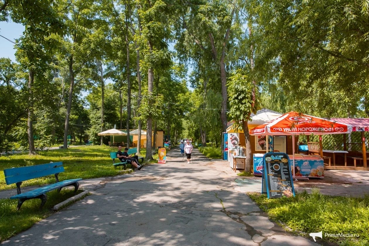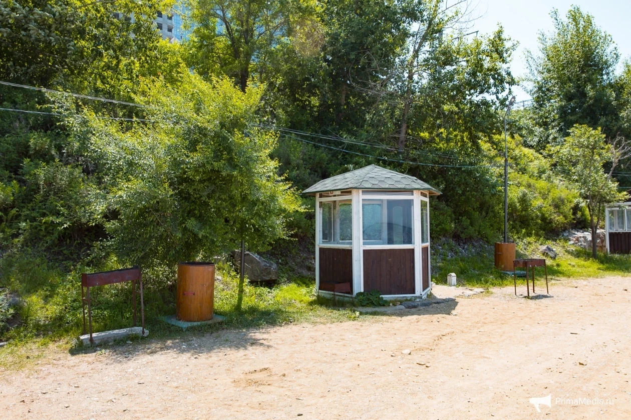 По ровному берегу с мелкими камешками и насыщенной зелёной травкой пролегают деревянные дорожки — идеальное место для прогулок, по словам посетителей. Для любителей активного отдыха есть прокат сапов, чтобы отправиться в увлекательное путешествие по акватории Владивостока.