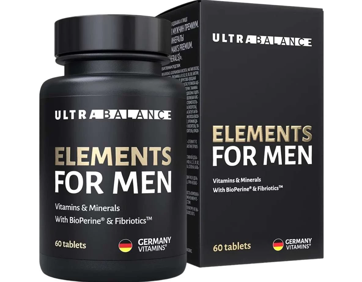 Мужские витамины Elements for men premium with bioperine & fibriotics станут незаменимым источником питания для вашего организма. Среди его преимуществ – основные компоненты, произведенные в Европе и США, а также максимально допустимая дозировка в России. Но вот самое интересное: в составе присутствует биоперин, который повышает усвояемость витаминов и минералов! С регулярным приемом этого комплекса вы сможете поддерживать свой иммунитет, заботиться о здоровье тела, суставов и связок. А это еще не всё! УльтраБаланс также обеспечит правильное питание для мозга, глаз, кожи, волос и ногтей. Плюс к этому, комплекс улучшит качество сна и стимулирует метаболизм в организме мужчин.