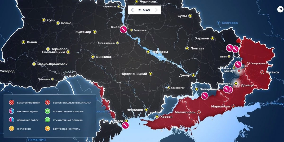 Карта боевых действий на Украине на сегодня, 2июня 2023 года