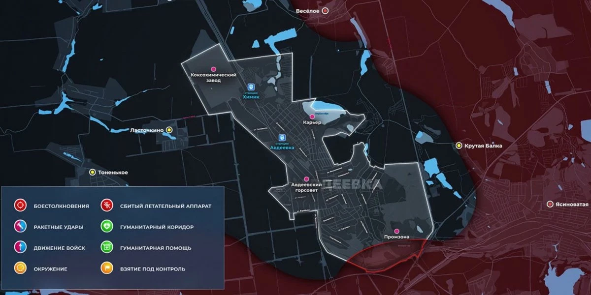 Карта боевых действий на Украине сегодня, обстановка к утру 2 июня 2023 года от Mash. Бои за Авдеевку