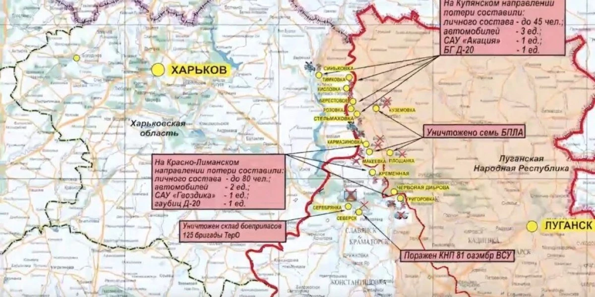 Российские войска нанесли удары по позициям украинской армии в районах Стельмаховки, Кармазиновки и Червоной Дибровы. У Розовки и Кременной пресечены действия диверсионно-разведывательных групп (ДРГ) противника.