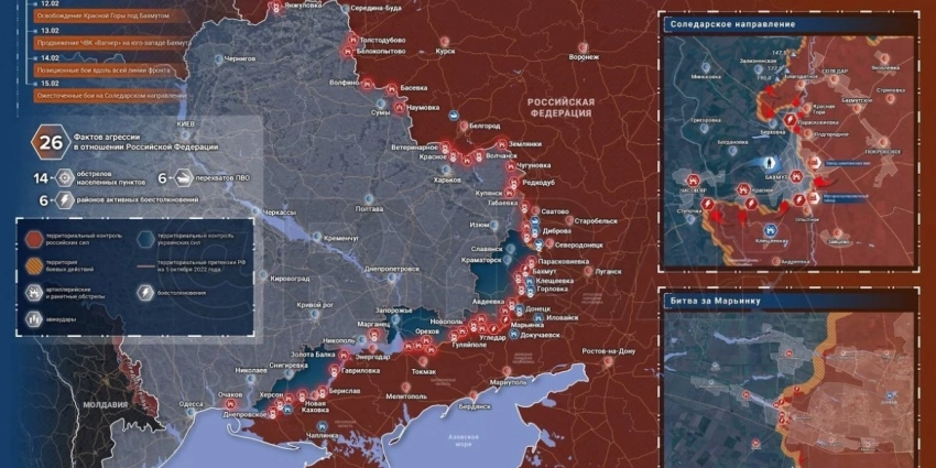 Новая, обновленная карта боевых действий на Украине 16 февраля 2023 года. Актуальные данные на сегодняшний день