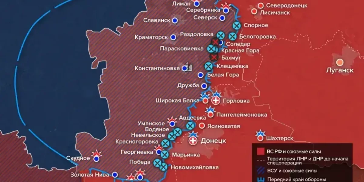 Сражение продолжается и в Бахмуте, где «вагнеровцы активно перемалывают подходящие подкрепления ВСУ. Южнее бойцы ЧВК сражаются за Клещеевку, взятие которой откроет дорогу на Бахмут с юго-запада.