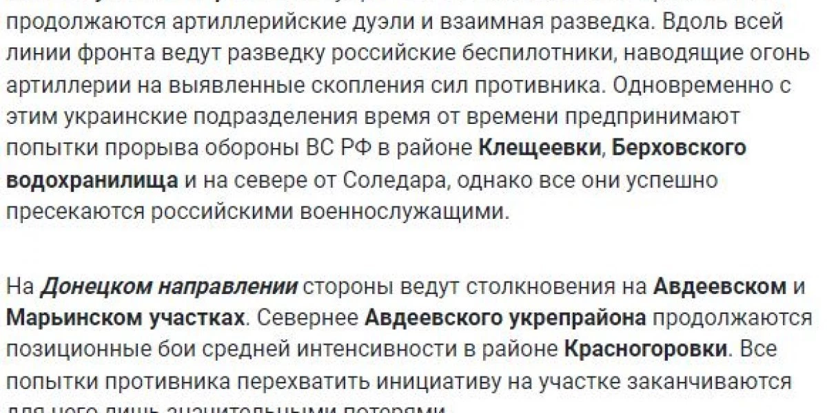 ОН уточнил, что в настоящий момент столкновения идут на трех участках запорожского фронта: васильевское и ореховское направления, а также Времевский выступ. Источник