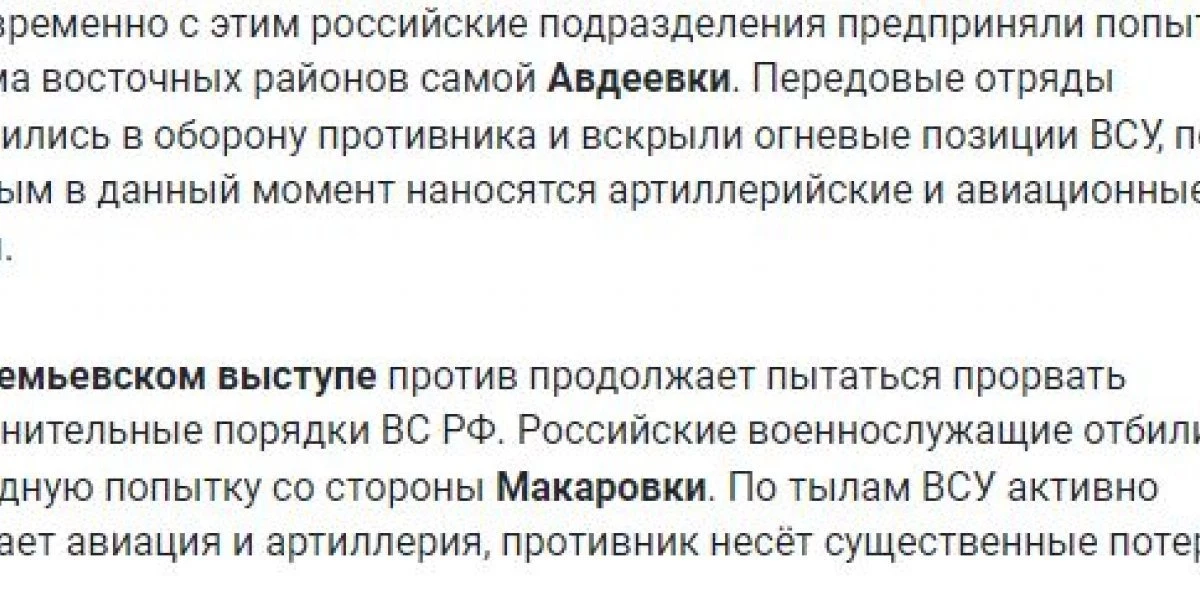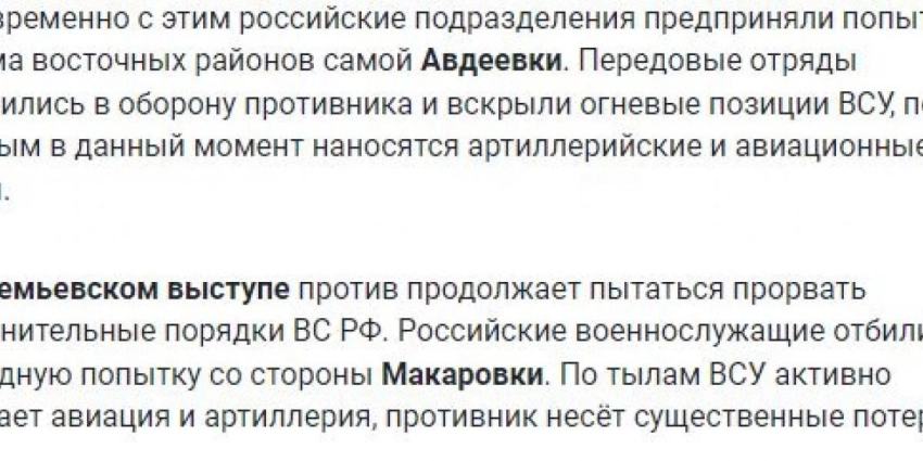 В свою очередь, обозреватели портала Avia.Pro отметили, что на северо-востоке от города Бахмут на линии Сакко и Ванцетти — Николаевка — Яковлевка продолжаются боевые столкновения ВС РФ с силами 10-й огшб и теробороны. Противник хочет прорвать оборону, пытаясь вклиниться в промежутки между опорными пунктами и минными полями ВС РФ.