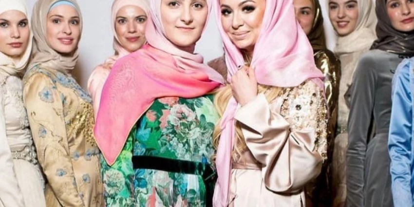 Айшат Кадырова (в зеленом платье) с моделями дома мусульманской моды Firdaws. С 2016 г. Айшат работала в нем директором