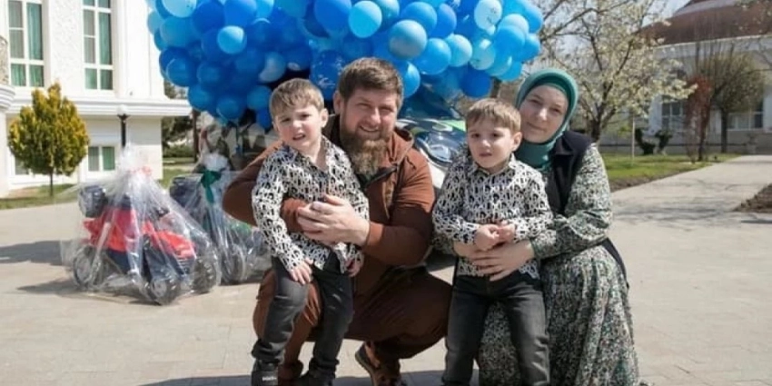 Рамзан и Медни Кадыровы с усыновленными близнецами Хасейном и Хусейном