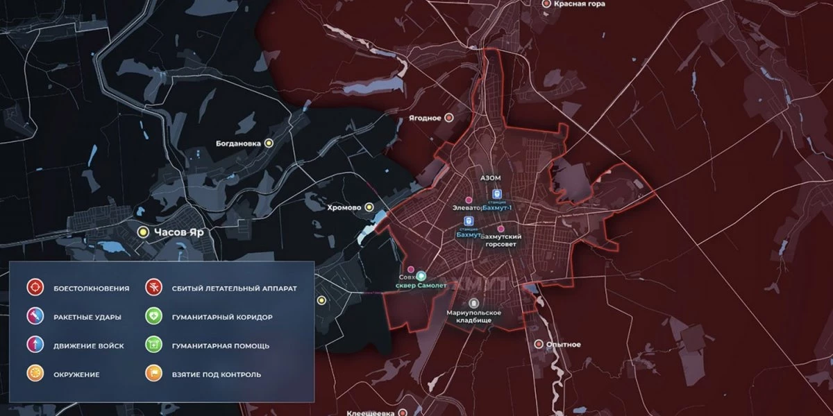 Карта боевых действий на Украине сегодня, обстановка к утру 2 июля 2023 года от Mash. Бои на Артёмовском направлении