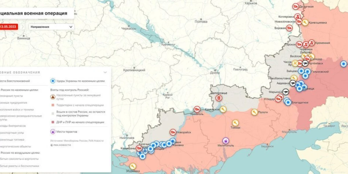 - Карта боевых действий на Украине сегодня, к утру 14 мая 2023 г. Спецоперация России на Украине, спецоперации РФ: