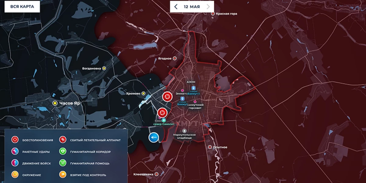 - Карта боевых действий в Артемовске (Бахмут) на сегодня, 14 мая 2023 года