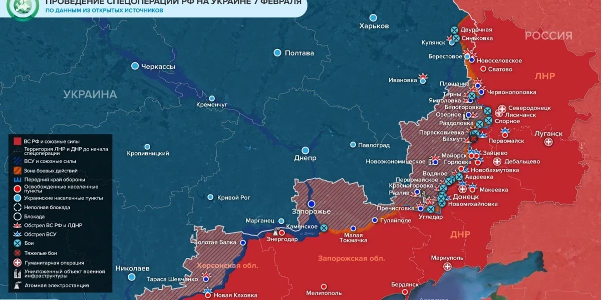 Спецоперация на Украине сегодня, 8 февраля: новая карта боевых действий, что происходит на Украине, ход, итоги