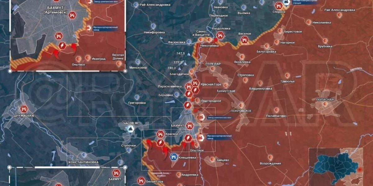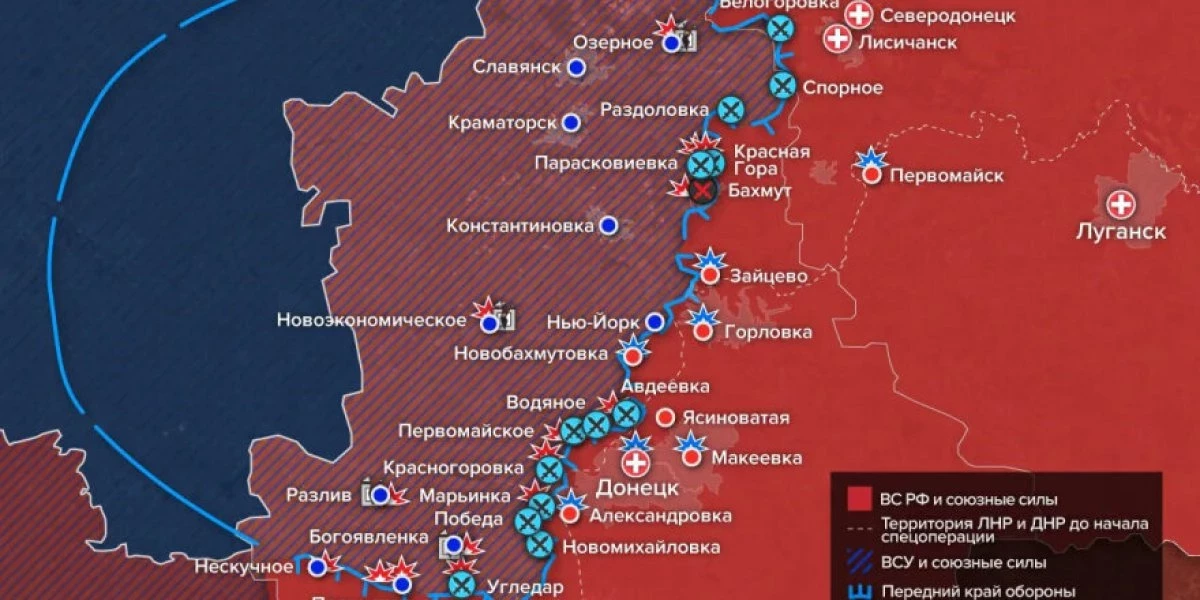 «Вагнеровцы смогли прорваться к участку трассы между поселками Ивановское и Ступочки. Вытеснив оттуда бойцов 46-й бригады ВСУ, они фактически перерезали дорогу Бахмут — Константиновка.