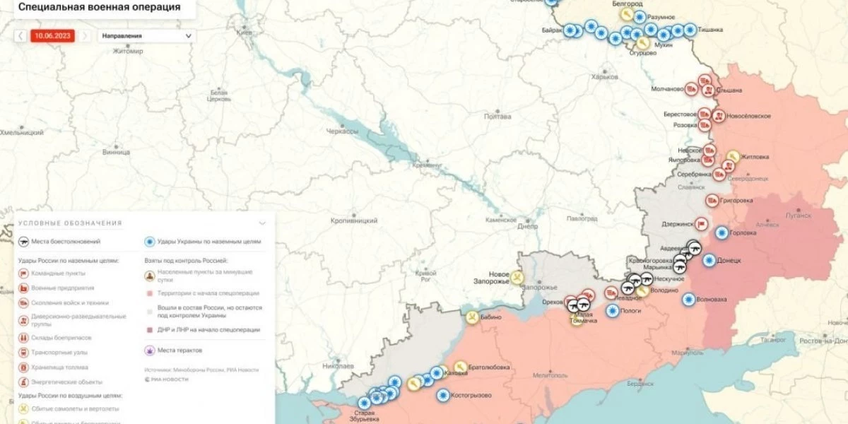 - Карта военной операции на Украине на сегодня, 10 июня 2023 года