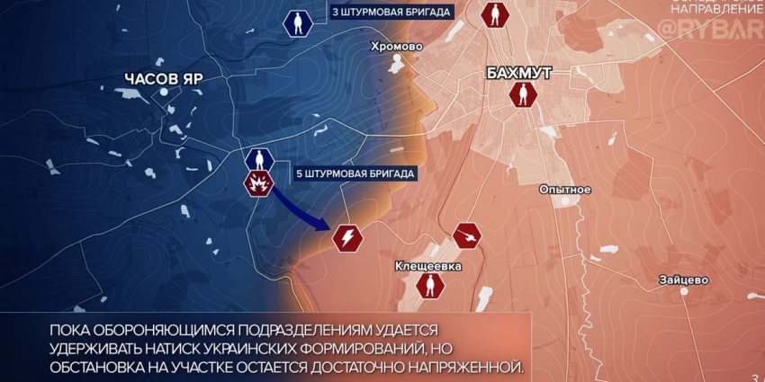 Бахмутское (Артемовское) направление: бойцы ВС РФ контратаковали со стороны Берховки и Дубово-Васильевки. В это же время ВСУ атаковали российские позиции в районе Курдюмовки и Клещеевки.