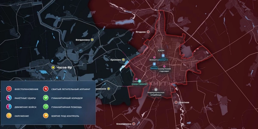 Карта боевых действий на Украине сегодня, обстановка к утру 29 июня 2023 года от Mash. Бои на Артёмовском направлении
