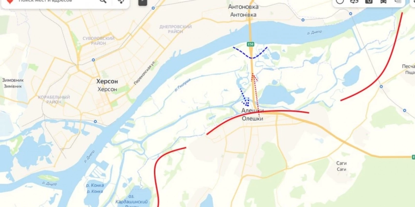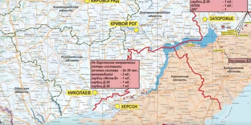 Российская армия продолжает выбивать боевиков с плацдарма у Антоновского моста. Но враг хорошо закрепился, тем самым не неся большие потери от ударов ВСРФ ВКС. Также ВСУ перебросили системы ПВО для противодействия авиации и усилили работу РЭБ на данном направлении.
