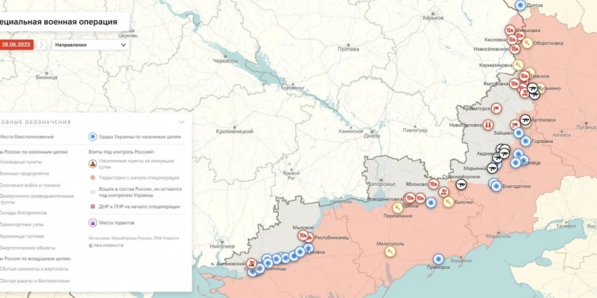 Карта боевых действий на Украине, к утру 29 июня 2023г., от РИА Новости