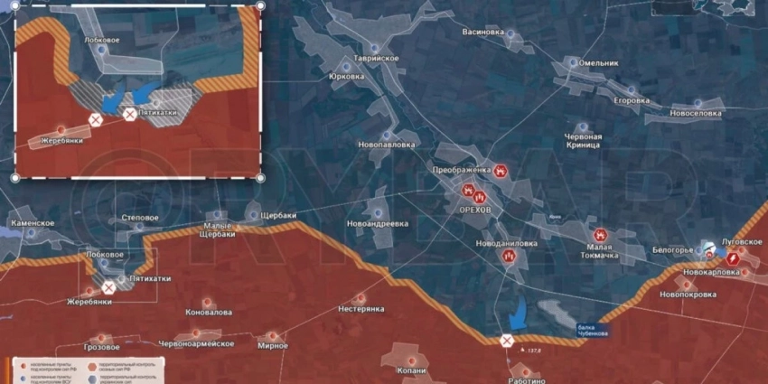 Запорожское направление: на Ореховском и Гуляйпольском участках без изменений за сутки, с обеих сторон перегруппировка. Тем временем на Времьевском выступе боевики заняли Ровнополь, а ВС РФ контратаковали в Новодаровке.