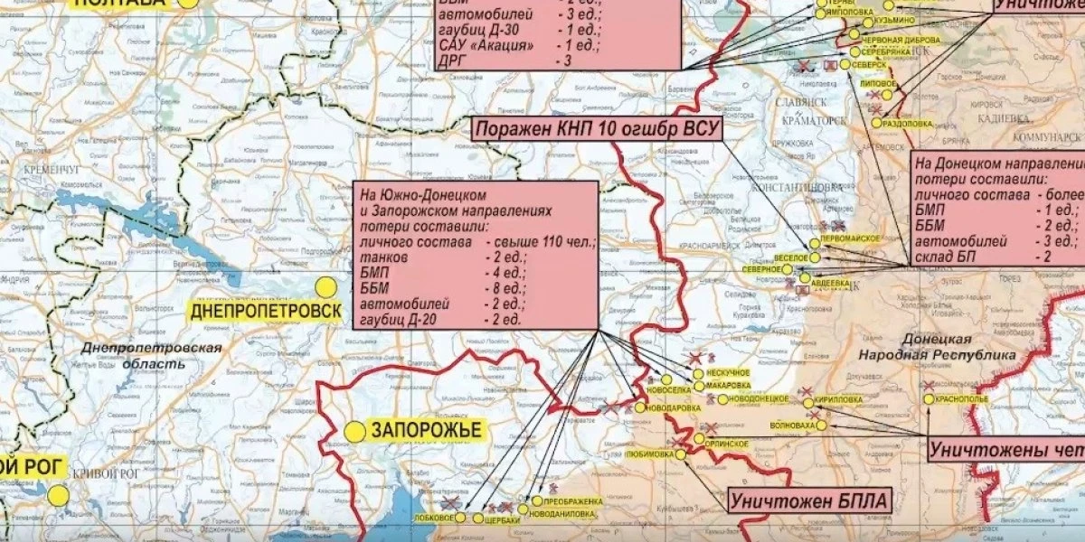 В течение прошедших суток вооруженные силы Украины продолжали безуспешные попытки наступательных действий на Южно-Донецком, Запорожском, Донецком и Красно-Лиманском направлениях.