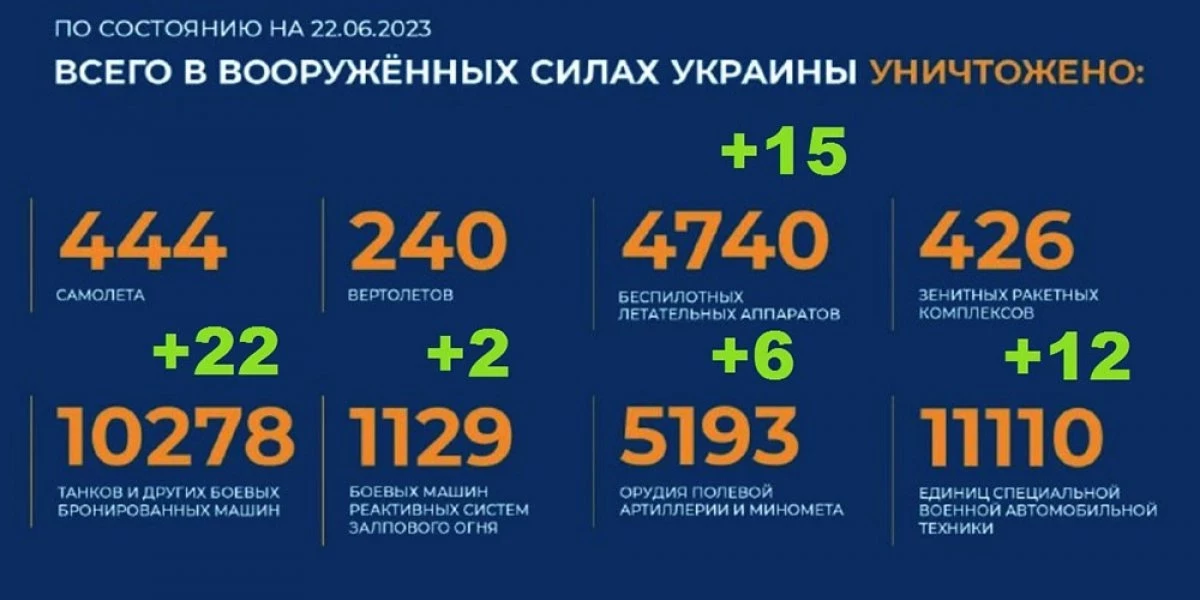Актуальный брифинг Министерства обороны РФ о ходе проведения специальной военной операции на территории Украины по состоянию на 22 июня 2023 года. Сводка боевых действий на Украине.