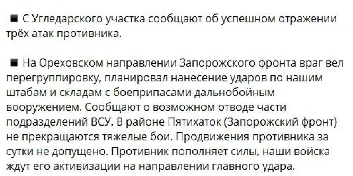 На Запорожском направлении наши войска продолжают сдерживать наступление ВСУ
