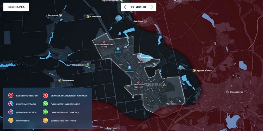 Карта боевых действий на Украине, обстановка 22 июня 2023 года, Бои за Авдеевку