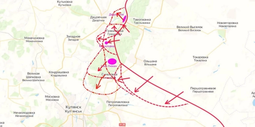 Карта боевых действий на Украине, 22 июня 2023г., Краснолиманское и Купянское направление
