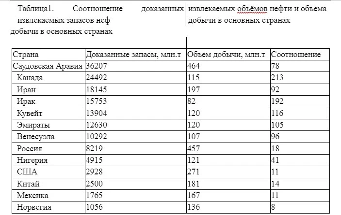 Как видно из таблицы 1, тезис о масштабности запасов нефти в национальной экономике весьма сомнителен. При удельном весе их в мировых менее 5% наша экономика работает в очень истощительном режиме, производя более 15% мировой добычи нефти.