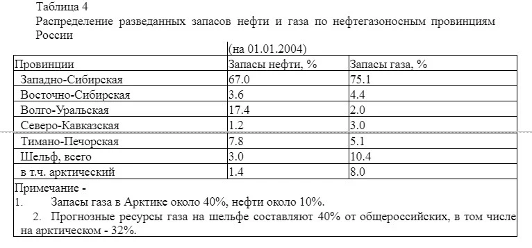 В результате цикла работ в Баренцевом и Карском морях, выполненных в 1970-80-х гг., была открыта и подготовлена к освоению Западно-Арктическая шельфовая нефтегазоносная провинция (включающая нефтегазоносные и перспективные структуры Баренцева, Печорского и Карского морей), недра которой содержат до 80% ресурсов арктического шельфа России. В пределах провинции было выявлено и разведано более 10 промышленных нефтяных, нефте-, газоконденсатных и газовых месторождений, включая 4 уникальных (Штокмановское и Ледовое в Баренцевом море, Ленинградское и Русановское — в Карском) и 4 крупных. На Западно-Арктическом шельфе России открыты не только акваториальные продолжения бассейнов суши (Тимано-Печорская и Западно-Сибирская НГП), но и самостоятельные, возможно, более богатые шельфовые нефтегазоносные бассейны (Баренцевская НГП) (табл.5).