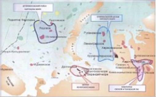 Рис.5. Основные месторождения углеводородного сырья в западном секторе арктического шельфа