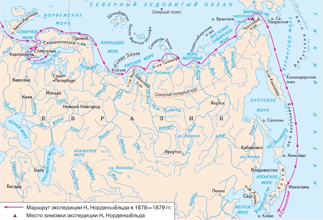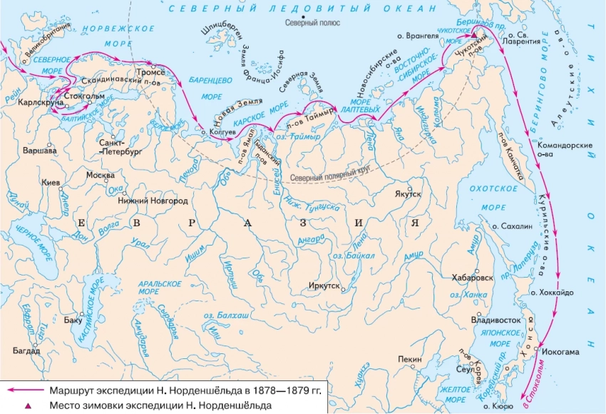 В истории мореплавания и изучения арктических широт произошло уникальное событие в 1878-1879 годах. А.Э. Норденшельд смог впервые пройти из Норвегии в Тихий океан. Это важное географическое достижение стало примером для организации движения судов по Северному морскому пути в нашей стране.