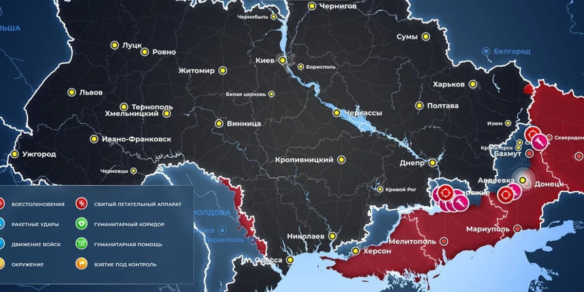 Карта боевых действий на Украине сегодня, обстановка к утру 25 июня 2023 года от Mash. Бои за Авдеевку