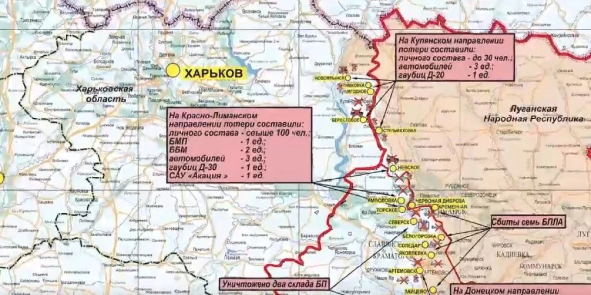 В районах населенных пунктов Ягодное и Берестовое Харьковской области уничтожены три украинские диверсионно-разведывательные группы. Потери противника составили до 30-ти украинских военнослужащих, три автомобиля, а также гаубица Д-20.