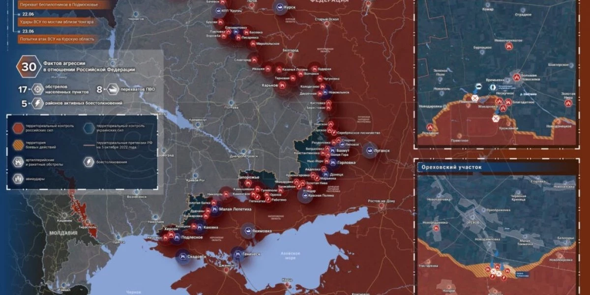 Карта боевых действий на Украине сегодня, Общая обстановка к утру 25 июня 2023 года от Mash