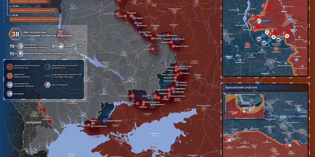 Карта боевых действий на Украине, к утру 25 июня 2023г., от РИА Новости. Карта специальной военной операции.