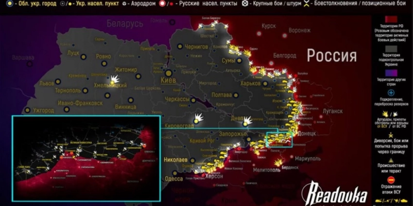Карта боевых действий на Украине сегодня, к утру 25 июня 2023г. Карта от readovka.news