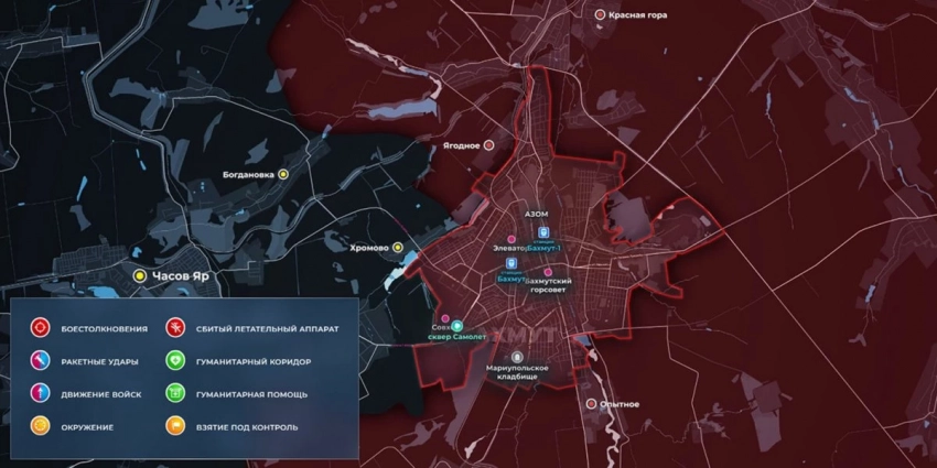 Карта боевых действий на Украине сегодня, обстановка к утру 25 июня 2023 года от Mash. Бои на Артёмовском направлении