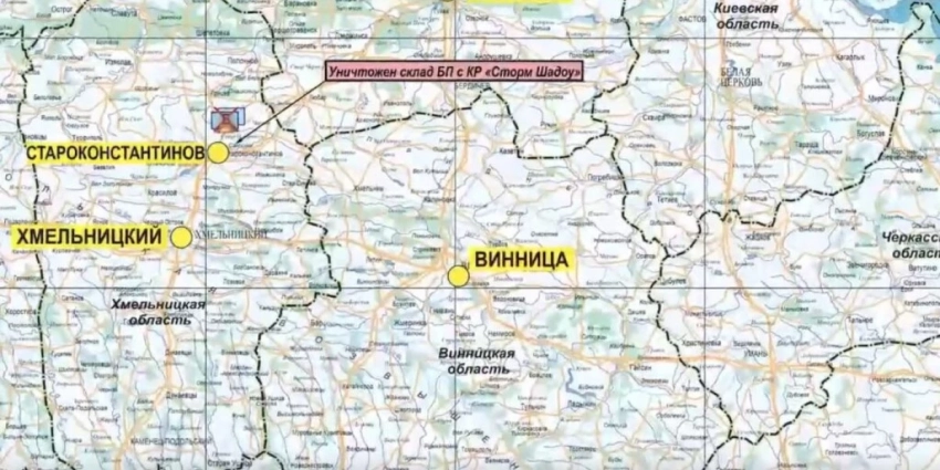 Кроме того, 23 июня в ответ на удар по автомобильному мосту через Чонгарский пролив на украинской авиабазе в районе населенного пункта Староконстантинов Хмельницкой области уничтожен склад с крылатыми ракетами «Storm Shadow.