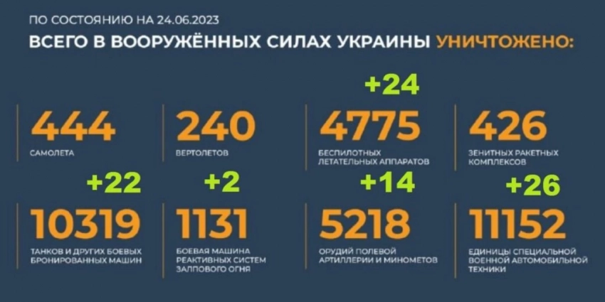 Фронтовая сводка, новости спецоперации к утру 25 июня 2023 г.