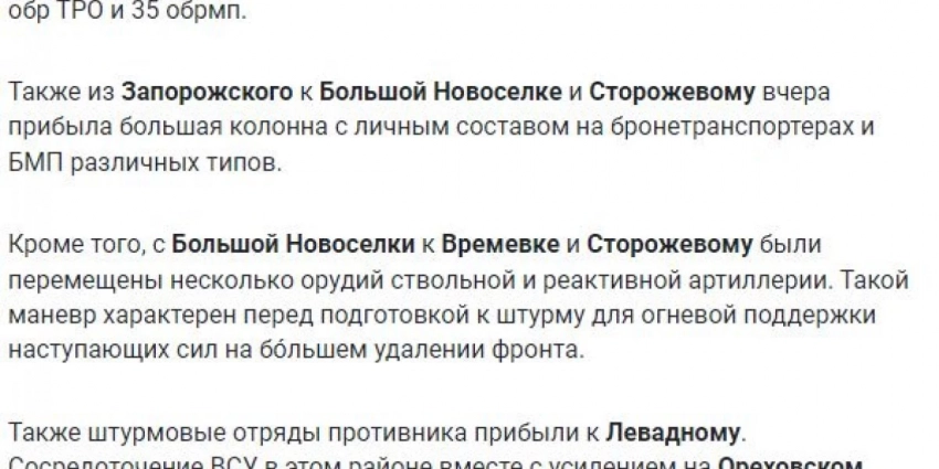 Фронтовая сводка, новости спецоперации к утру 25 июня 2023 г. Донецкое и Запорожское направление