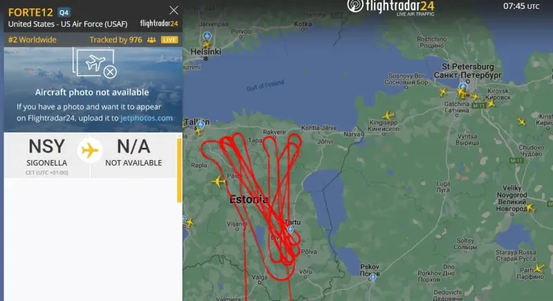 Согласно данным на портале Flightradar, БПЛА, принадлежащий ВВС США, наворачивал круги над территорией Эстонии. При этом траектория его движения пролегала вдоль российской границы на участке длиной около 151 километра, охватывая районы, находящиеся всего в нескольких десятках километров от Ленинградской и Псковской областей.